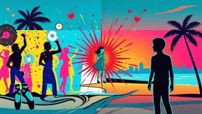 She found her friend said hello and she got her a juice and left her there to greet other guests. Little by little her house was full of kids. Her parents around but very discreet to no embarrass their kids. Because she didn’t think she was going to be asked to dance by any boy, she found herself a sit on the sofa and start watching what everyone was doing around her. Daydream was her speciality. Suddenly someone was talking to her, asking something, and she froze for a bit, he spoke to her again, and she pretended she hadn’t heard him because of the music. First thing she noticed was that she never seen him before and that he had an accent from someone that comes from Rio. She answered his questions and he kept talking to her, maybe getting the courage to ask her to dance, and when he finally got the courage she followed him to have a dance.
