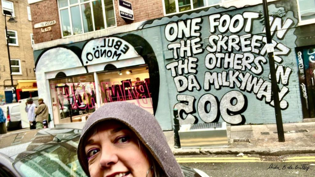 Um grafite de Brick lane, onde foi a experiência, o artista escreveu de trás pra frente…