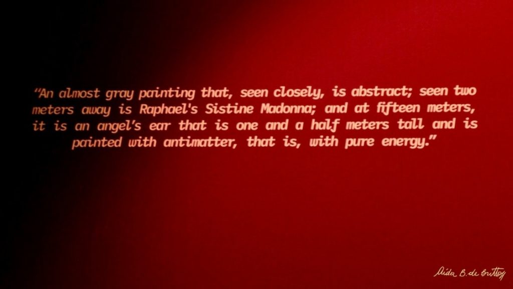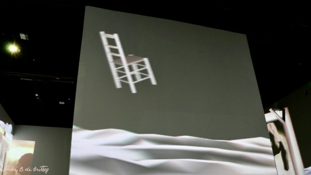 Uma das coisas que achei mais interessante foi suas pinturas feitas com pontos, e que tem um vídeo ele explicando como fez. Não dava pra entender o que ele falava pois misturava as línguas porém tinha lá um trabalho dele feito de pontos que dependendo da distância que você olha, são 3 coisas diferentes, eu fiquei encantada com isso e tentei capturar as 3 imagens separadamente, porém a câmera tem uma visão mais avançada que nossos olhos e eu não consegui… rsrs