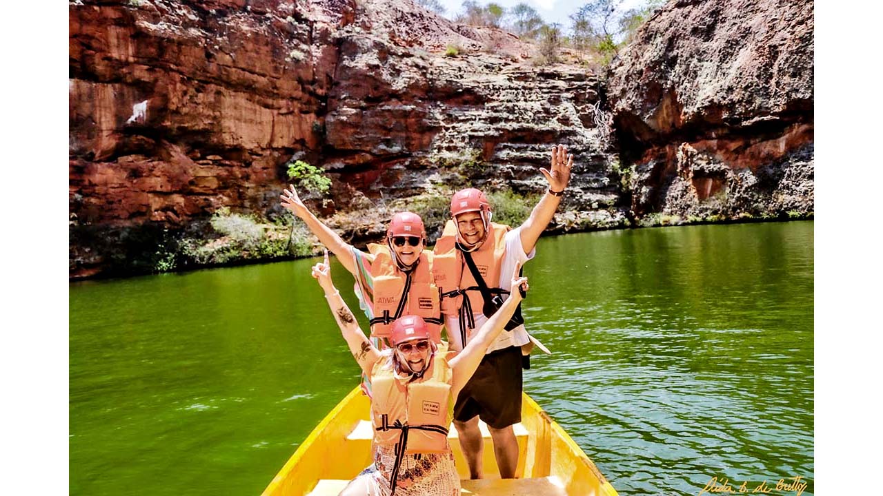 No outro dia toda coberta de protetor solar com fator 50, chapéu, óculos escuros, fomos pegar o barco para irmos para o cânions e no caminho para o estado de Sergipe, demos de cara com o lago da represa, ‘coisa linda de se ver’! O Rio São Francisco sempre foi parte de minha vida desde pequena. Papai, um desbravador, nos colocava na rural e íamos para Aracaju, numa estrada de barro com trechos bons e outros impossíveis, atravessávamos o rio de balsa e do outro lado pegávamos mais barro até chegar em Aracaju onde morava minha avó! Finalmente pegamos nosso barco e lá vamos nós naquele calor, mas a beleza era tanta que até o desconforto da temperatura foi esquecido, meu modo ‘fotógrafa’ foi ligado e eu me senti numa das aventuras de rapel que Ricardo fazia, com minhas lentes chegando bem perto daquelas paredes dos cânions, sentido a adrenalina que ele falava tanto, foi incrível!