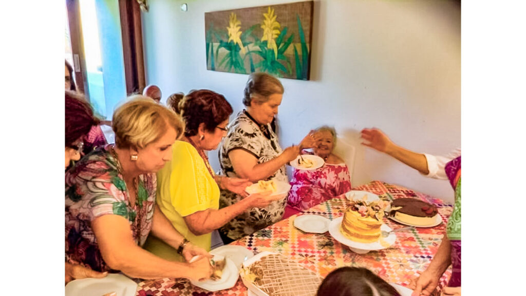 Finalmente, chegou o dia 19. Encontrava-se a minha Maria sentada na sua cadeira da varanda e eu ao seu lado quando 2 amigas, Ivone e Vera vão entrando e chegam à varanda e aí eu lhe disse: Maria, essa é uma festa surpresa que eu preparei para você. Vão chegar suas outras amigas. E assim foi feito. Tivemos cerca de 18 amigas presentes e mais a família, totalizando 30 pessoas.ela ficou radiante e abraçou-me agradecida.A felicidade era total,nos compreendíamos, apesar das suas dores e suas pernas inchadas, que sempre reclamava. Coloquei cuidadoras para ela poder se locomover melhor consegui pelo Instituto Pestallozzi uma cadeira de rodas eletrificada ,em julho de 2015, que a transportava dentro de casa e nas tardes das 6as. Feiras quando íamos passear no shopping. Dita cadeira já devolvi ao referido Instituto para concessão a outra pessoa que necessite.Depois do aniversário surpresa, e, em maio dia 30, a minha Maria quiz também preparar uma festa surpresa para mim convidando os meus amigos que vieram. Esse fato me emocionou bastante, pois que a minha Maria era muito conveniente em tudo que fazia, sem alardes.