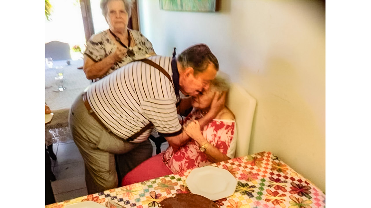 19 de março de 2015, 54 anos de casados e 77 anos de vida da minha Maria. De início pensei em um almoço aqui em casa com o que ela concordou, pedindo-me para que esse almoço fosse restrito para a familia . Perguntou- me por diversas vezes se eu havia convidado os parentes e eu informando que sim, não sabendo ela que eu já havia preparado uma festa surpresa e já convidado todas as suas amigas. Pedi a Andrea, nossa nora, que preparasse o almoço e de nada ela desconfiou.