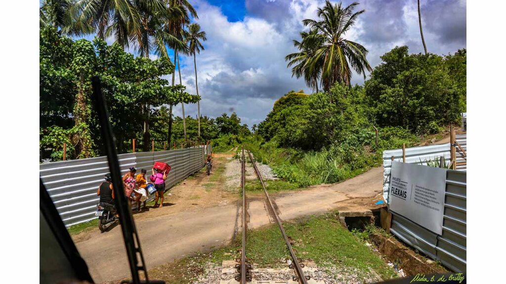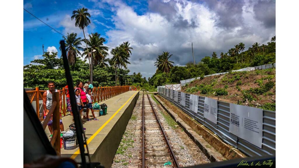 Para mim foi uma surpresa sem igual conhecer um lado da cidade onde nasci que nunca imaginei existir. Esse trem beira as maiores lagoas de Maceió a Mundaú e a Manguaba. A paisagem em trechos parece que estamos no meio da floresta. Pude ver as mulheres que limpam o sururu com seus sacos e baldes de sururu esperando o trem para levarem para vender. A cada ‘café com pão, bolacha não’ que o trem fazia, eu me encantava mais ainda com essa Maceió que eu não conhecia!
