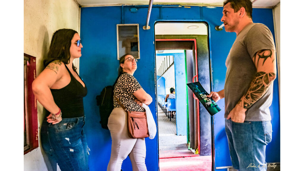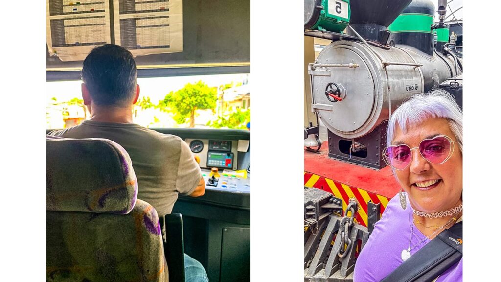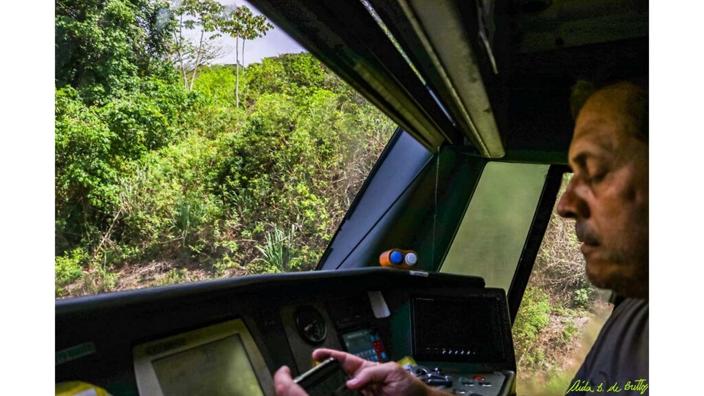 Foi tudo de última hora, combinamos de encontrar com eles na Estação Central. No segundo trecho, ele falou com seu colega que liberou para ele conduzir o trem e eu pude entrar na cabine com minha câmera… que coisa fantástica! Sou alagoana e maceioense e nunca tinha feito essa viagem de trem.
