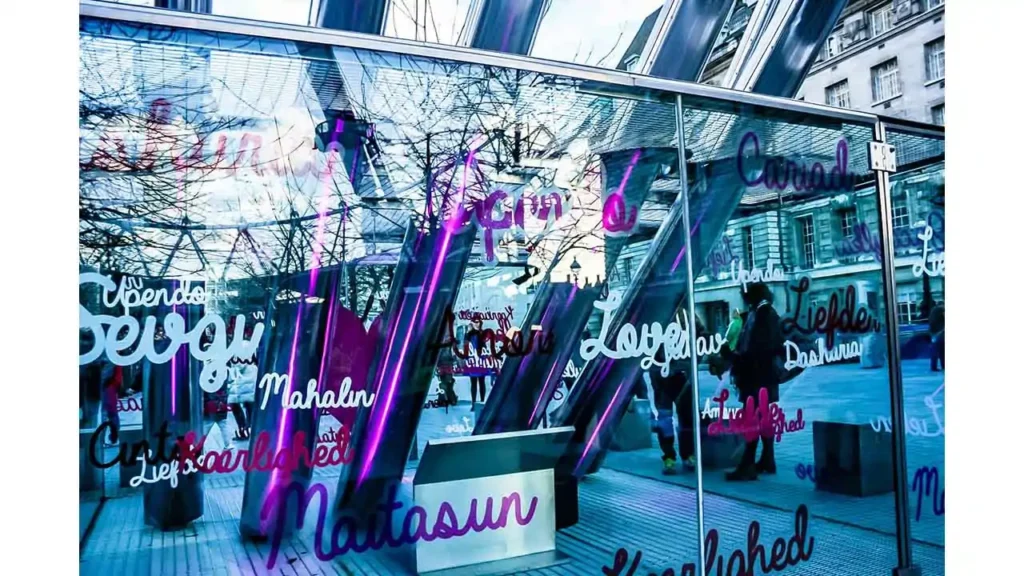 Uma instalação nos arredores da London Eye, onde o amor estava escrito em todas as línguas! Toda forma de amor!