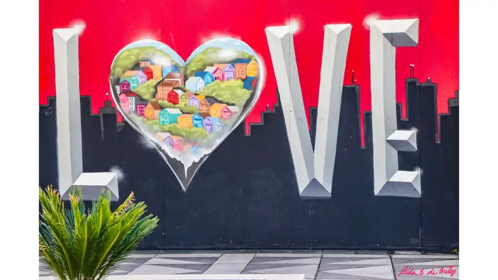 Grafite no bairro da Missão em San Francisco. Amor é alegria!
