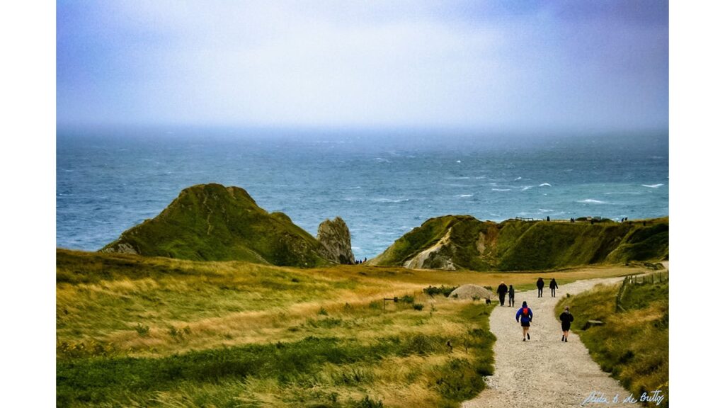 Depois de estacionar o carro, andei nesse caminho para chegar até a Porta de Durdle