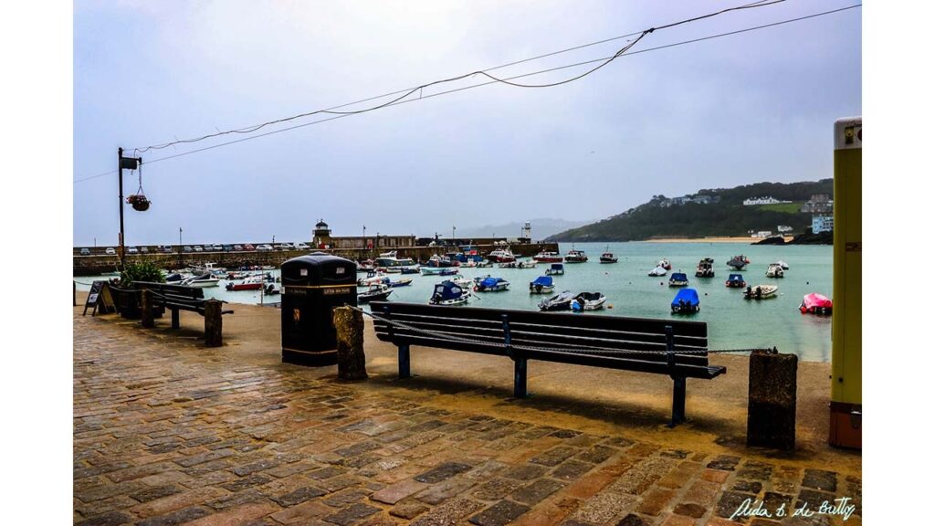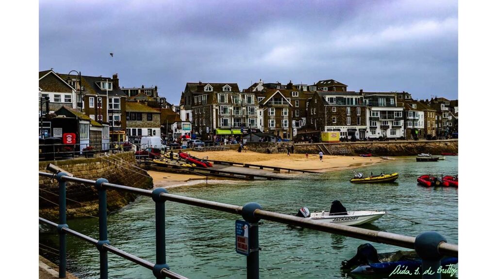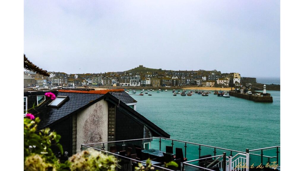 Os donos da casa me receberam com todo o carinho. Já era hora do jantar, então fui a um pub lá perto, comi e voltei para casa. Eles me ofereceram um gin and tonic, aceitei e fiquei conversando com eles, pegando dicas. Fui dormir e, de manhã, tomei café no jardim e fui para a estação de trem numa cidade chamada St. Erth. Ia deixar meu carro na estação e ir de trem para St. Ives.