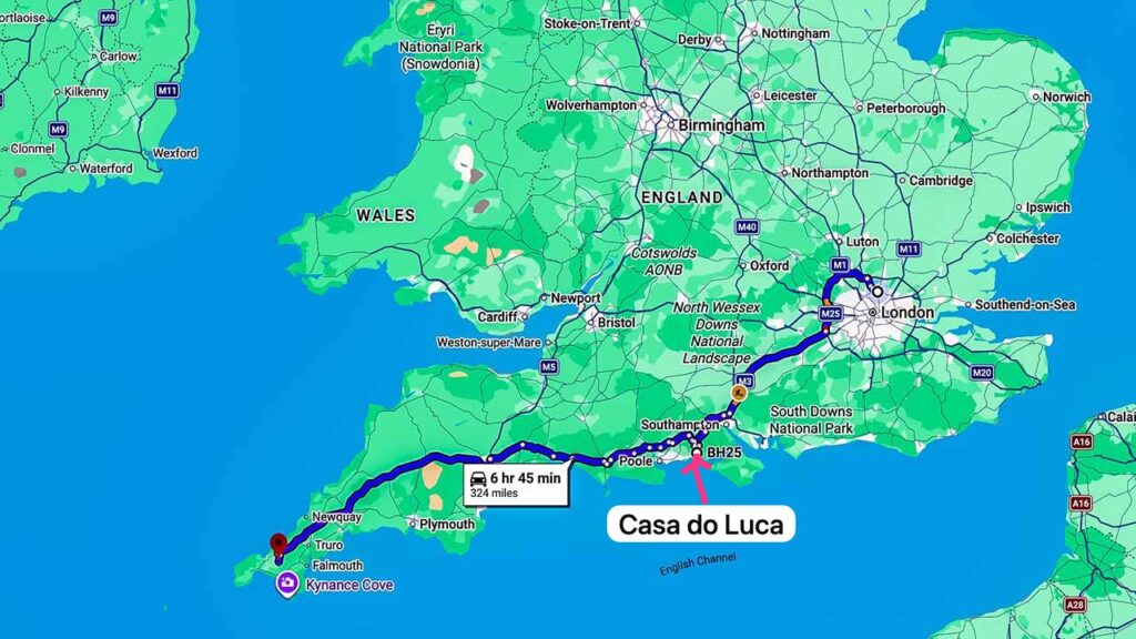 Foi preciso planejamento para ir a St. Ives, pois o lugar é longe… Combinei com o Lucca de almoçar na casa dele e deixar a cópia do meu livro, que eu havia esquecido de levar em julho, pois ficava mais ou menos no meio do caminho. Depois, segui viagem para o Airbnb em Praze-an-Beeble, uma vila perto de St. Ives. A hospedagem em St. Ives era bem cara, e o estacionamento, quase inexistente; então, para não ficar preocupada com isso, fiquei hospedada perto.